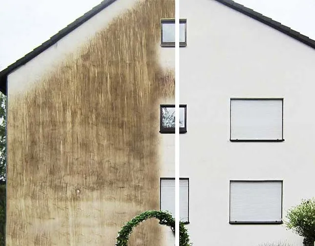 Sehen Sie selbst, wie eine saubere Fassade Ihr Zuhause oder Gebäude wieder zum Strahlen bringt.
